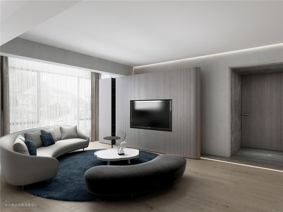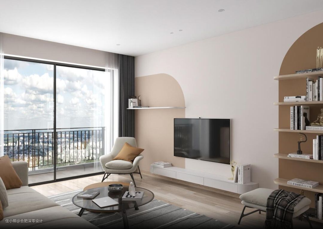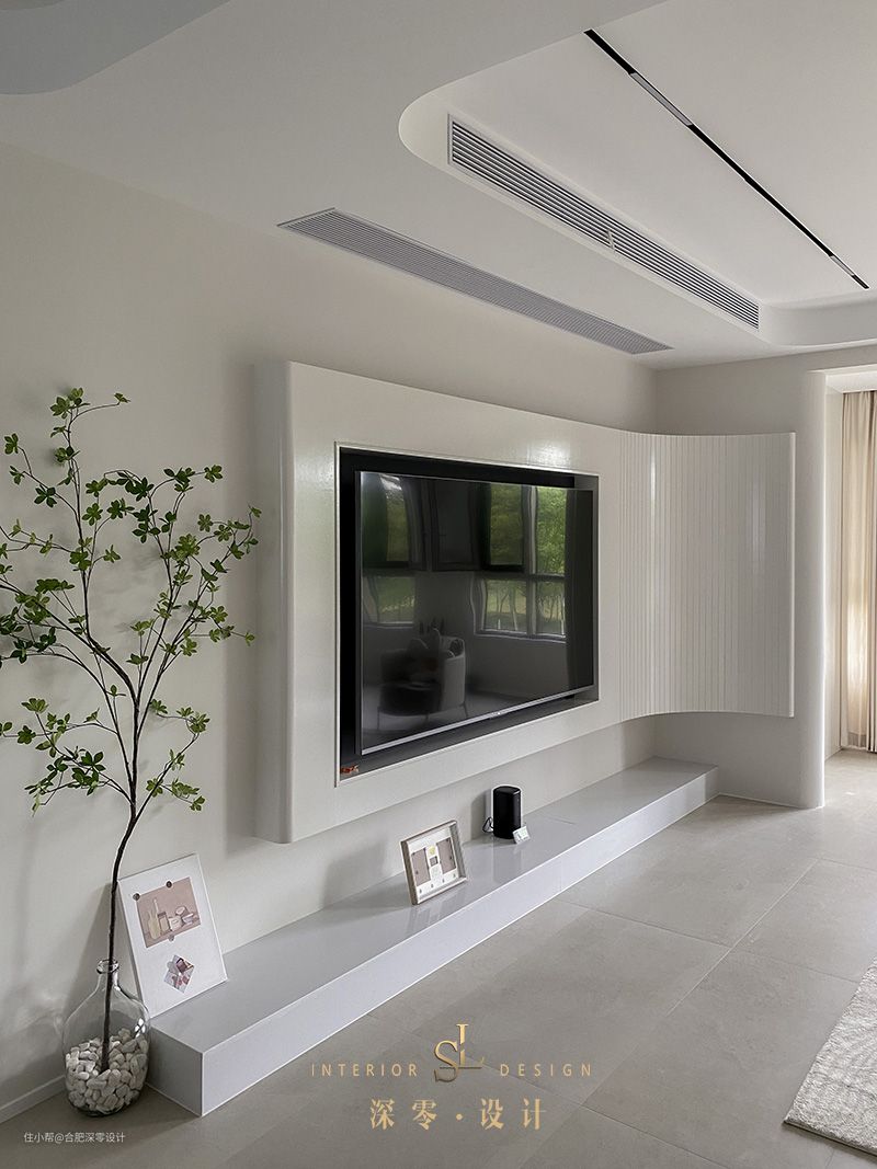 这是咱们自家接手的合肥-金辉庐州云著项目,根据整屋收纳容量决定,将电视墙做造型,视觉上也会更加清爽大气。