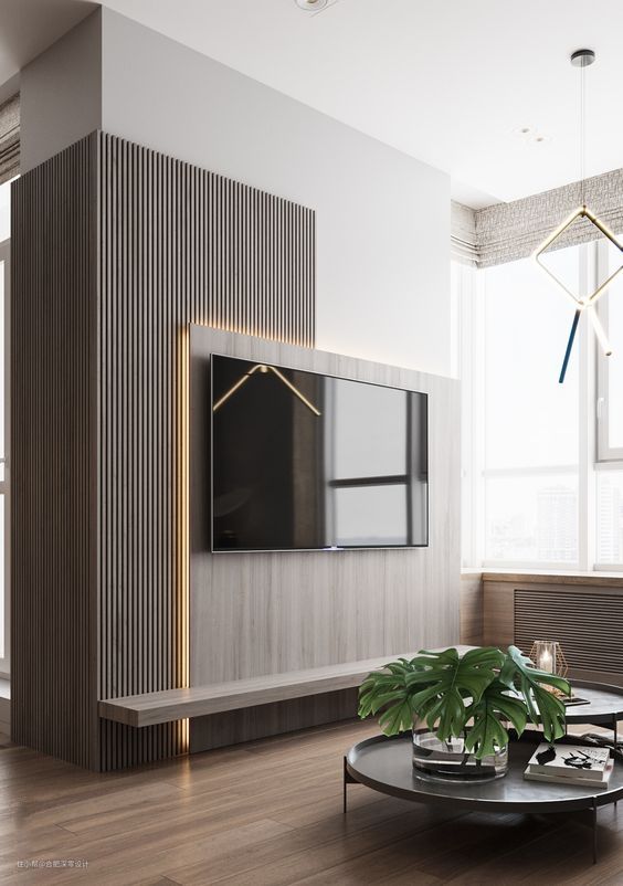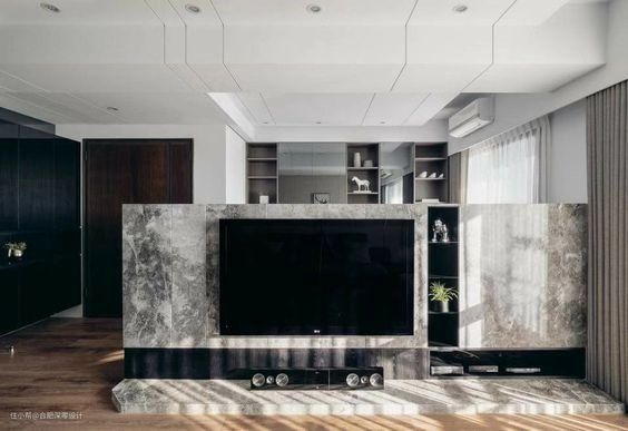 电视墙做造型,整屋颜值都上了一个档次,何必非执着整面做收纳柜