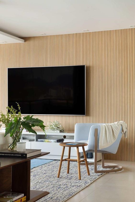 木饰面是如今装修常见的材料之一,有木栅栏式的,也有平面的,木色的天然属性很容易给人带来视觉上和空间上的舒适度,咱们也可以酌情考虑。