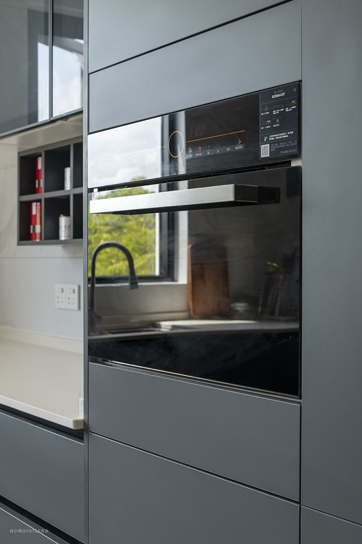黑色机体与橱柜融于一体,简洁省空间,不论颜值还是功能,都完美符合她的要求。