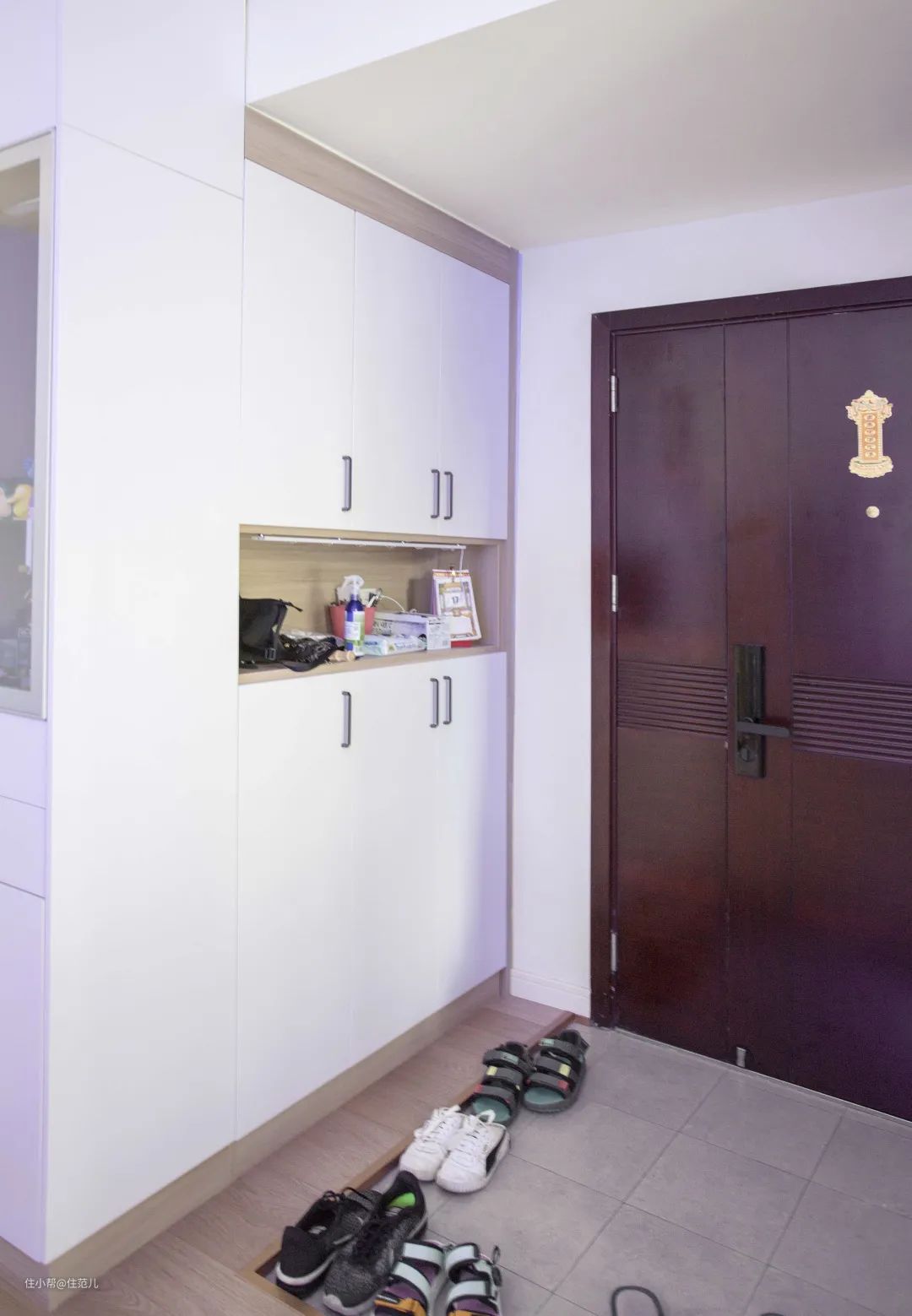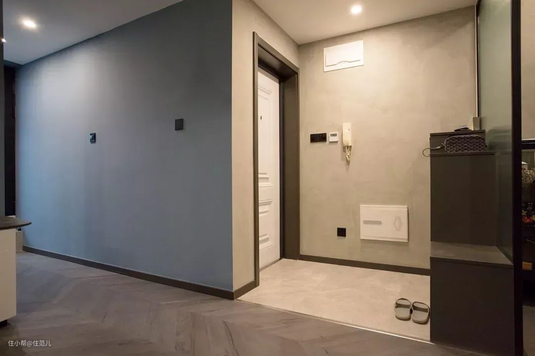 住范儿客户w先生就做了这样的设计,因为上海雨水较多,即使鞋上灰尘和雨伞的雨水弄脏瓷砖地面,清洁起来也很方便;