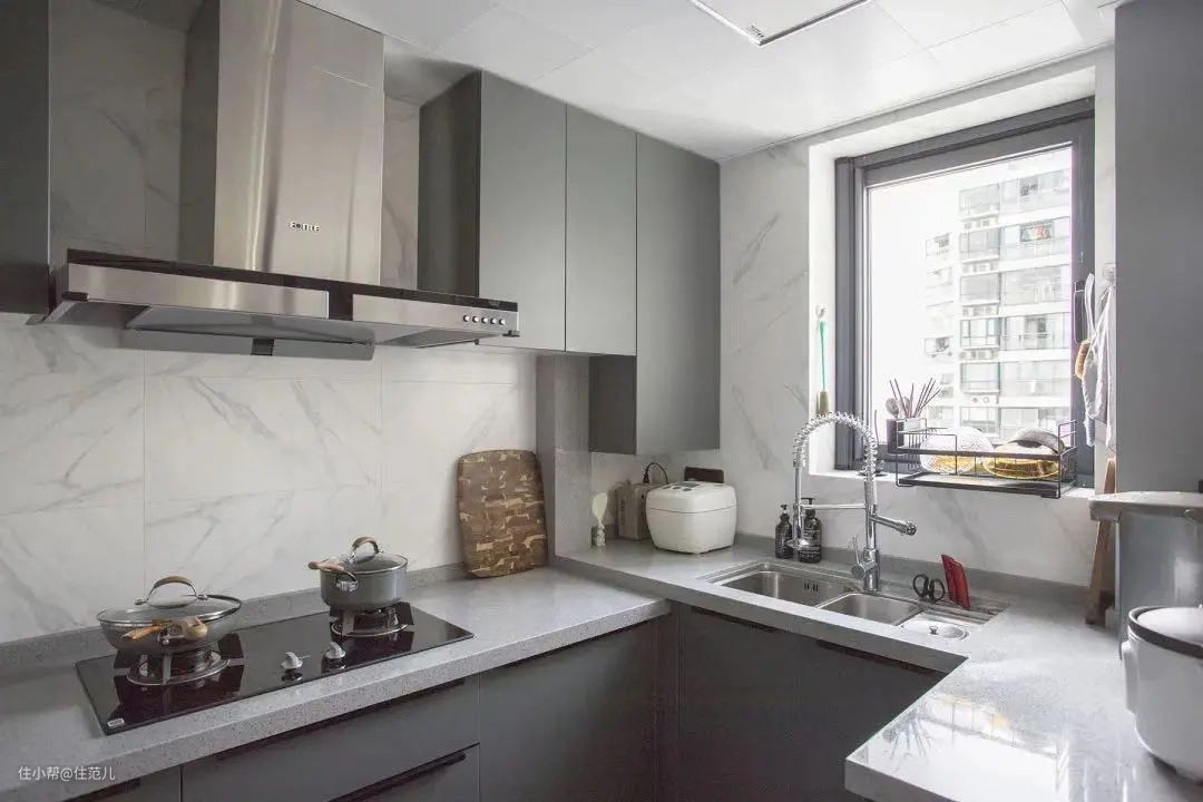 台面尽可能多做一些,能扶也能放东西,常用小家电直接摆在台面上更方便。
