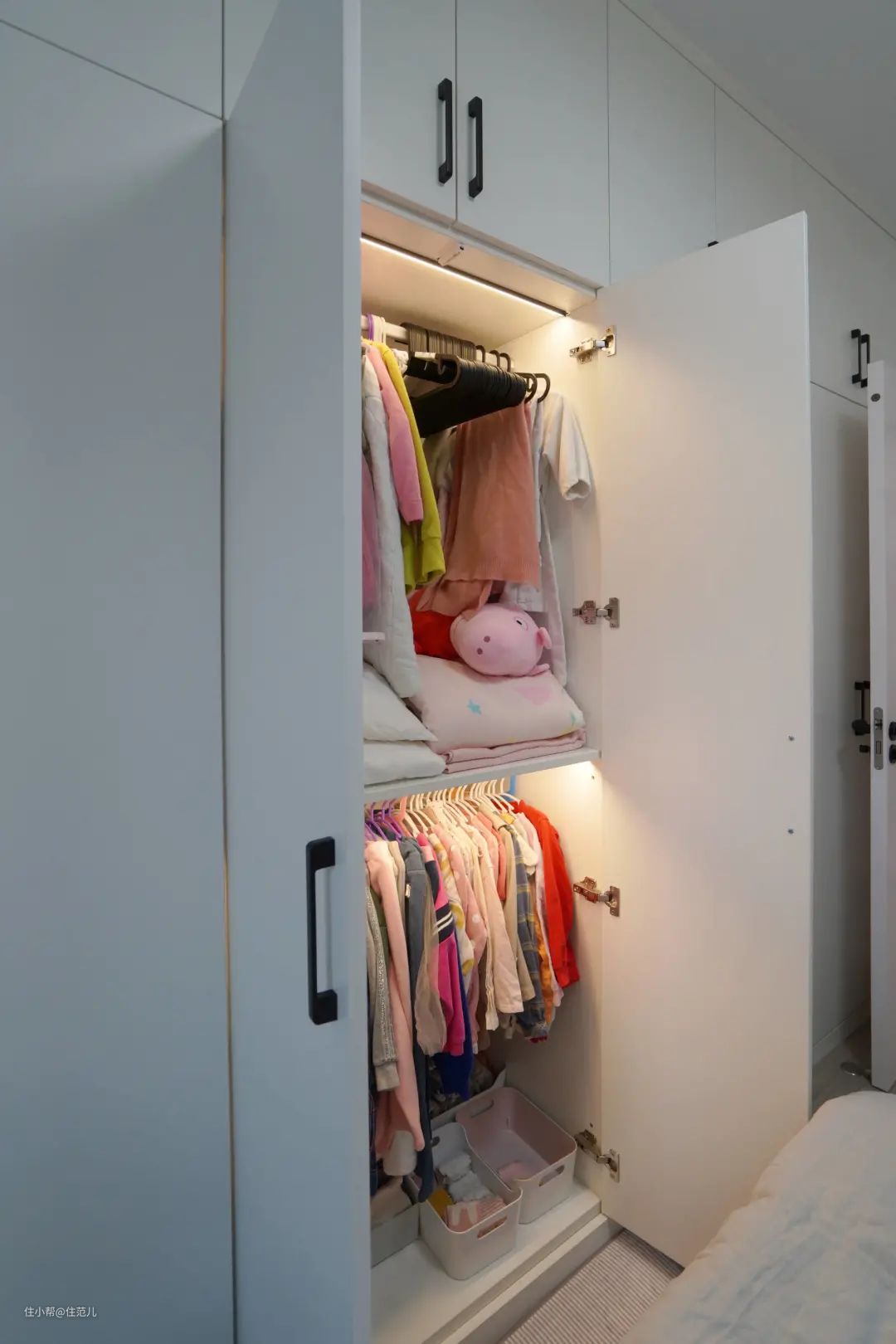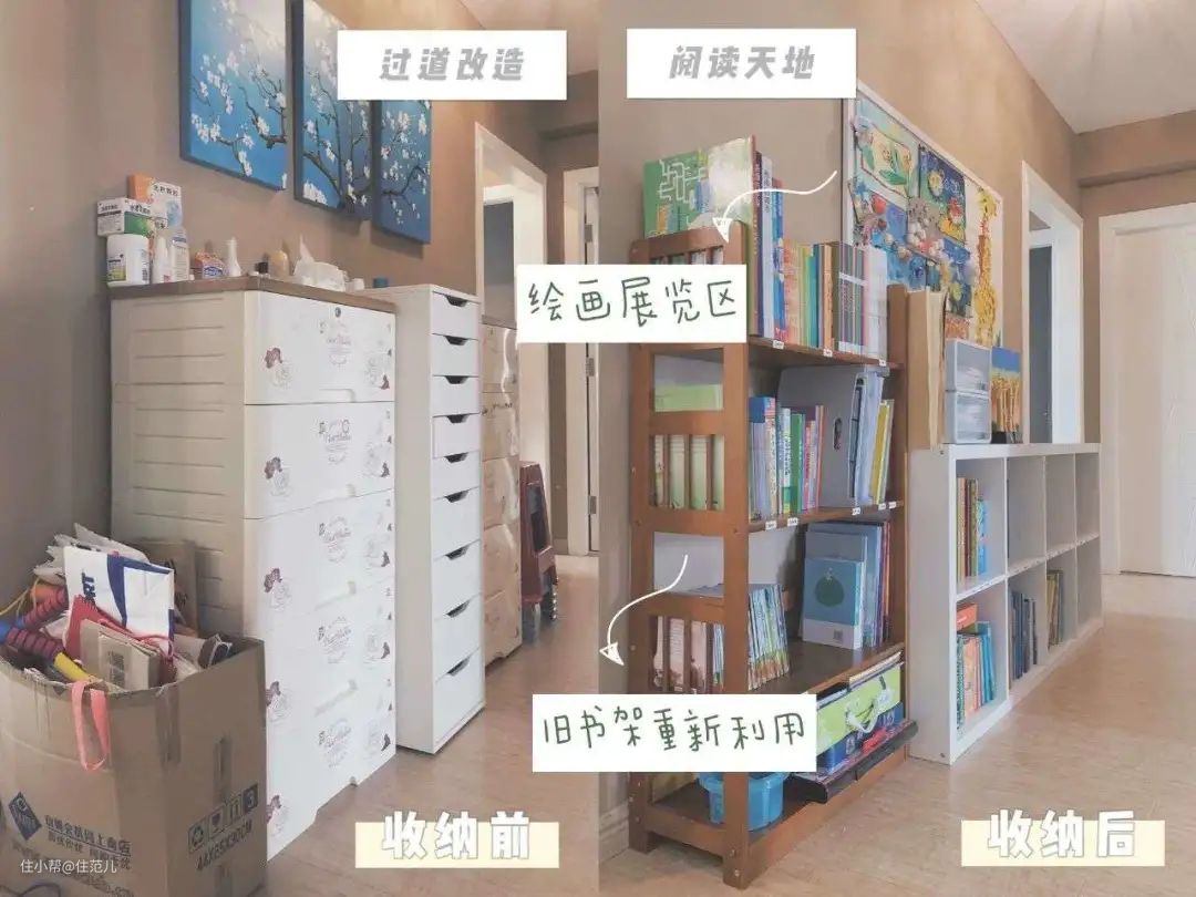 随着孩子成长,家里的收纳需要也会改变,家居布局时,至少要考虑孩子未来5-10年的成长,学龄前主要是绘本和玩具,学龄后就是书和学习区。