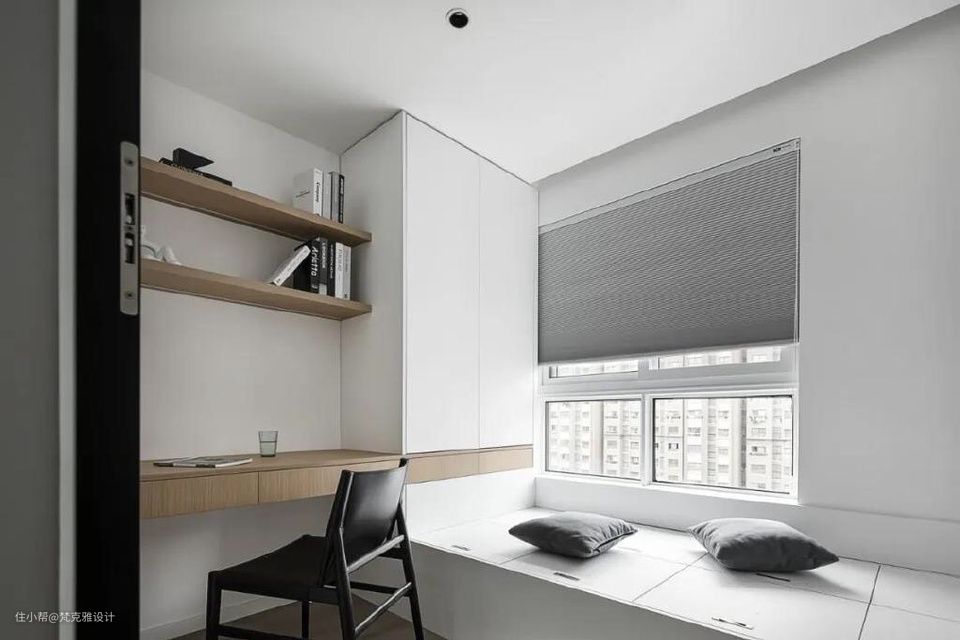 其中的一个客卧设计成榻榻米地台多功能房是比较常见的装修模式,一个空间既可以实现客卧功能,同时还可以实现大容量收纳,平时还可以当书房使用,一举多得。