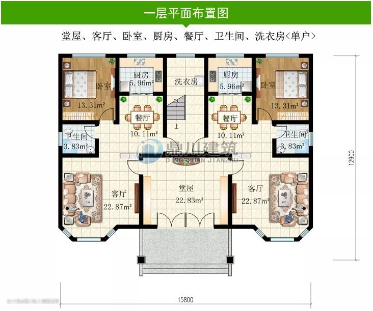一 层:堂屋、客厅、卧室、厨房、餐厅、卫生间、洗衣房