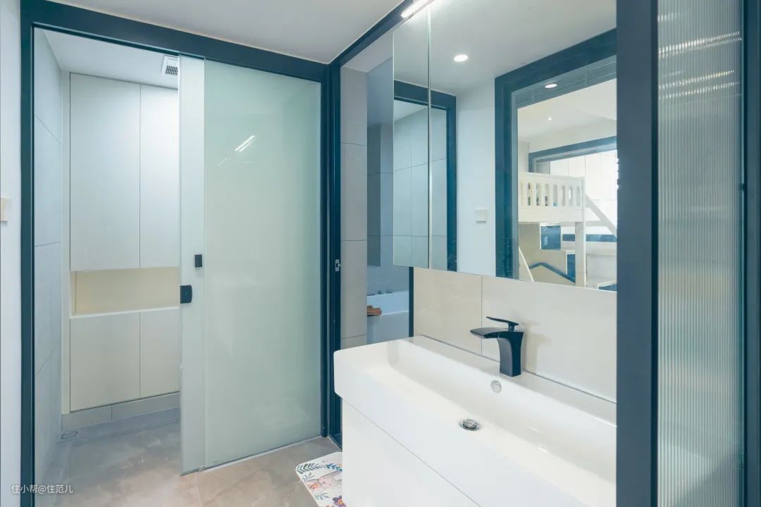 2. 公卫结合走廊空间,做了干湿三分离,并改用磨砂推拉门,透光又有隐私;