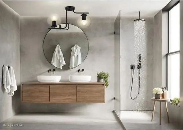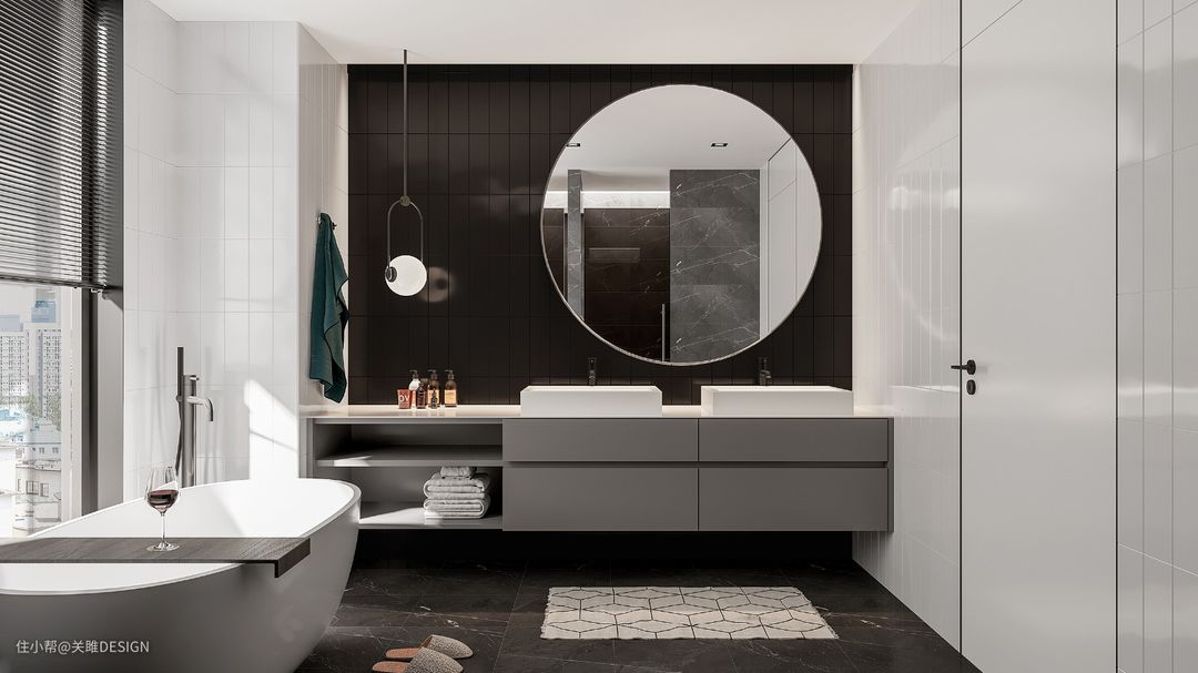 悬浮式浴室柜也就是挂墙式浴室柜,这类柜体在我们日常的设计中非常常见,下方悬空的设计避免了柜体与地面的接触,可以有效的减少湿气入侵,这类型柜体一般伴随着墙排水使用,方便打理,效果美观。