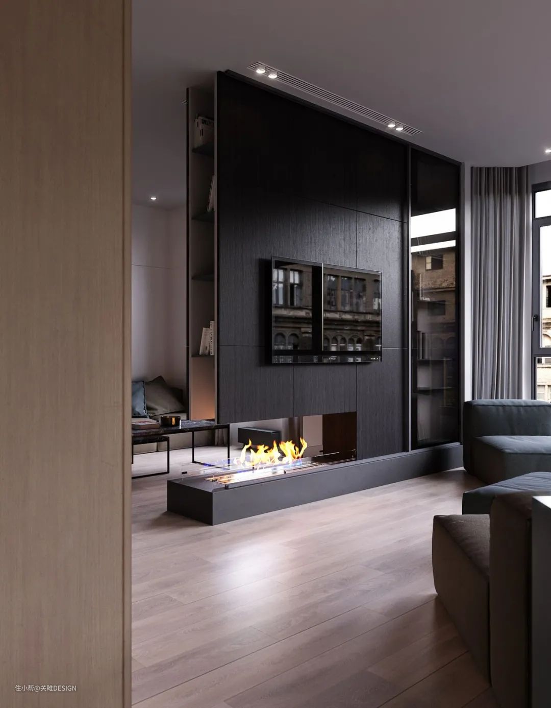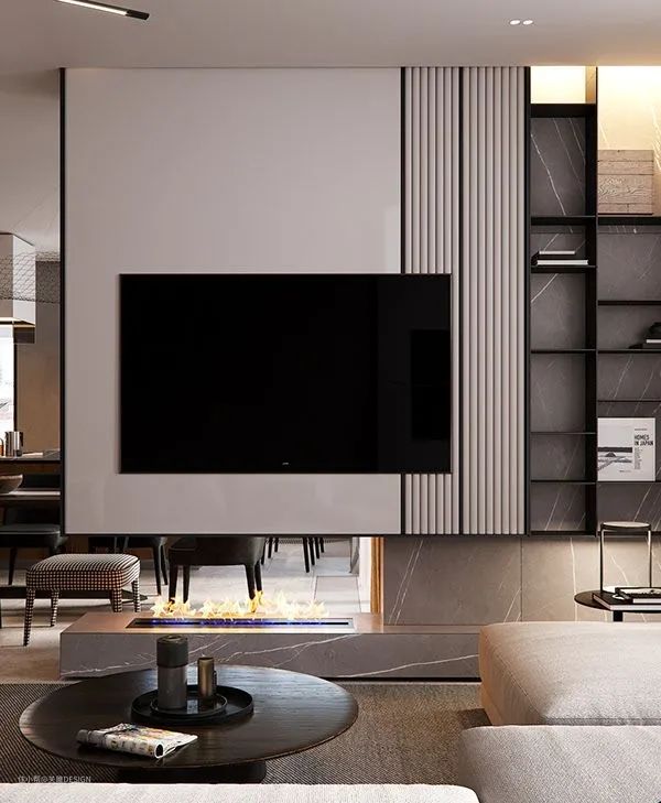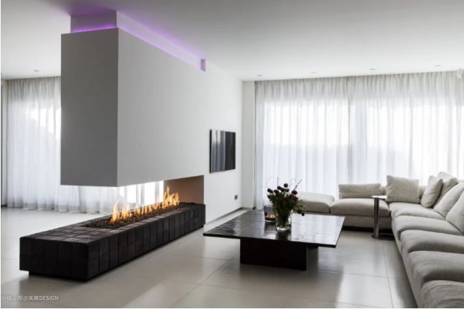 壁炉在当下的设计中也非常常见,壁炉在定制过程中由于本身的功能使用需求,上方柜体都要做成悬浮式,不管是一面靠墙还是全部悬空,效果都非常美观。