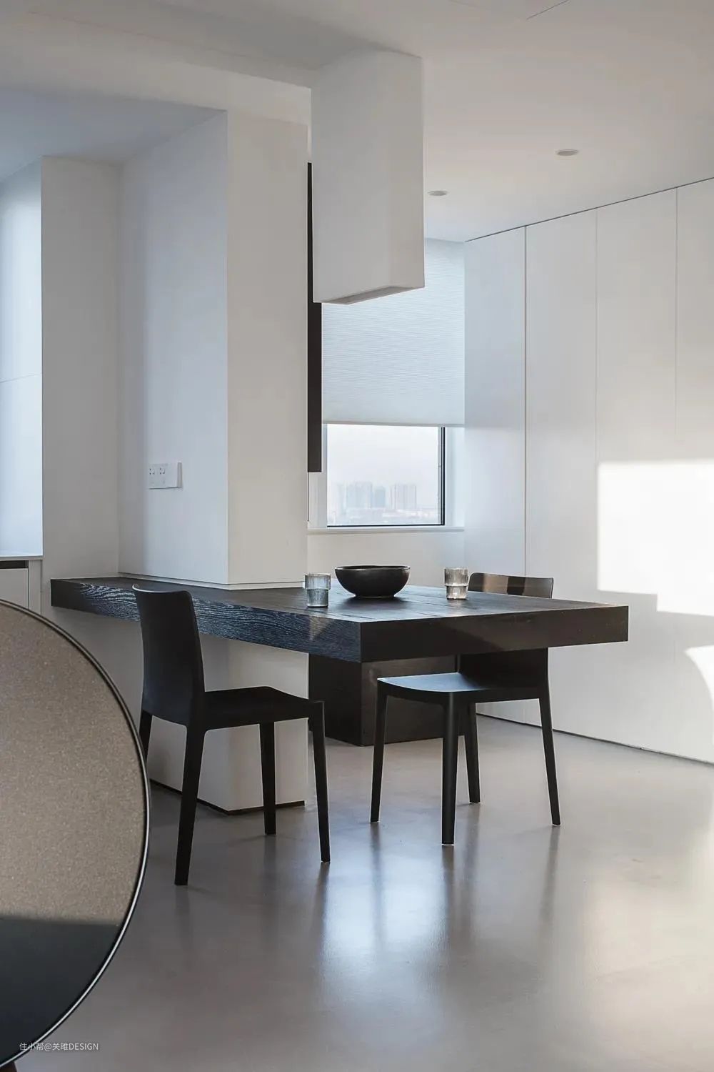 悬浮式餐桌吧台也就是无桌腿的餐桌或吧台,视觉上有一种漂浮感,在现代风格的家居设计中带有一种非常科技时尚的气息。