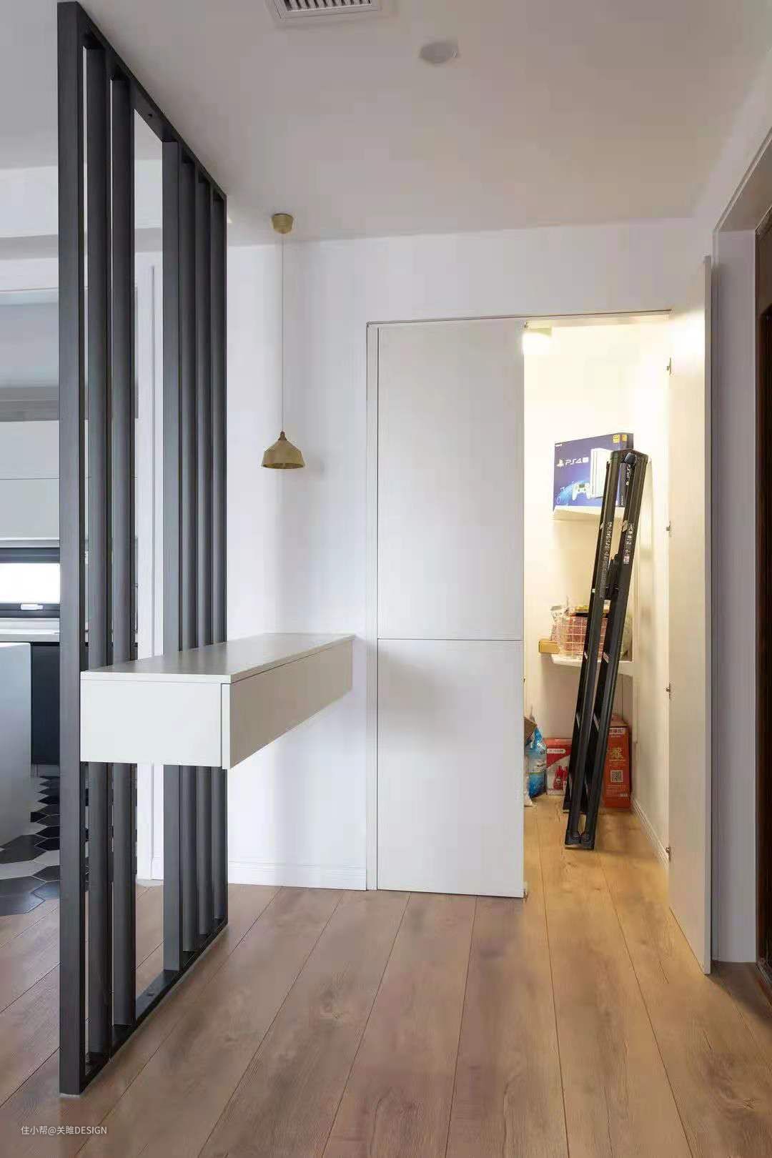 悬浮设计即悬空设计,简单来说就是“不落地”的设计,通过预埋、加固等处理方式,让柜子,桌板等呈现悬浮的既视感,空间会因此显得更加通透。
