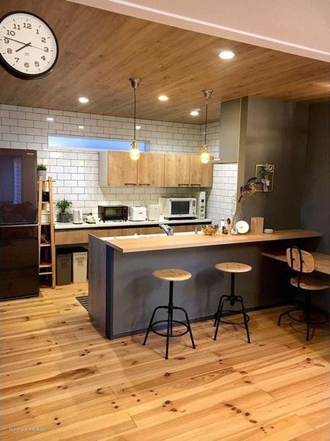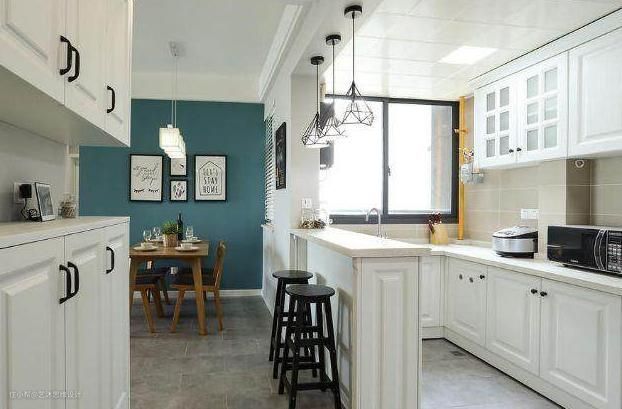 半开放式厨房充分的结合开放式厨房和传统厨房的优点集为一体,它能够有效的解决厨房的油烟问题,同时还能够像开放式厨房那样简单又时尚。