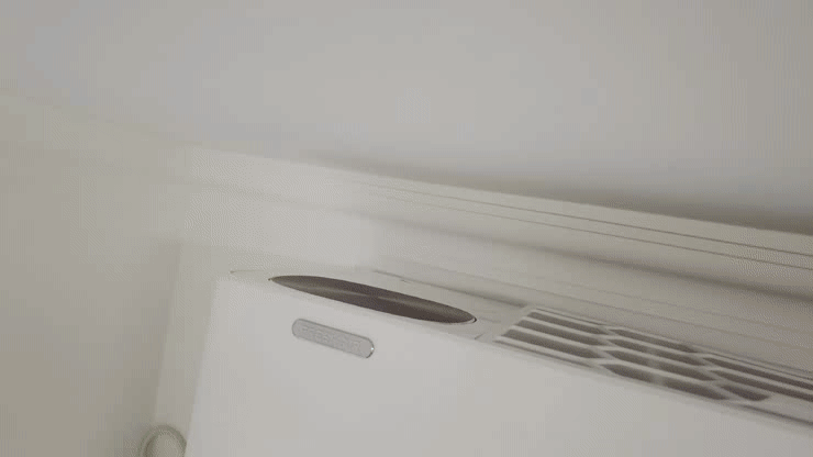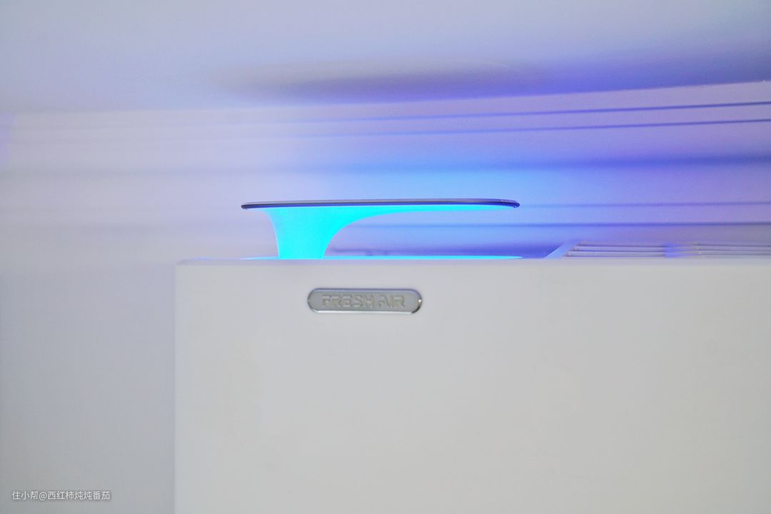 首先体验的就是这个“小蓝翼”。按下遥控上的“新风键”开启新风,小蓝翼会随着空调的打开自动缓缓升起,看起来非常梦幻 ▲