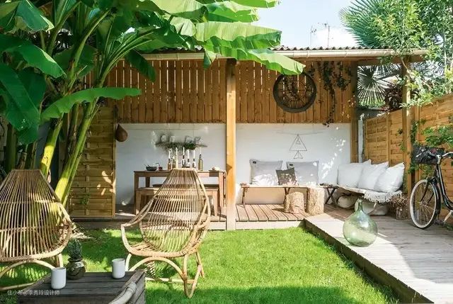 或者简单点,直接规划吊椅区,享受悠闲时光;考虑夏季蚊虫问题,可以选择带蚊帐的吊椅。