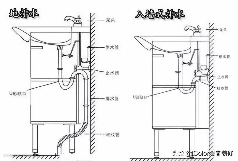 相较于将排水管裸露在外面的地排,直接通过墙面走,将水管隐藏在墙体内或者是柜体内,肯定是更为美观的。