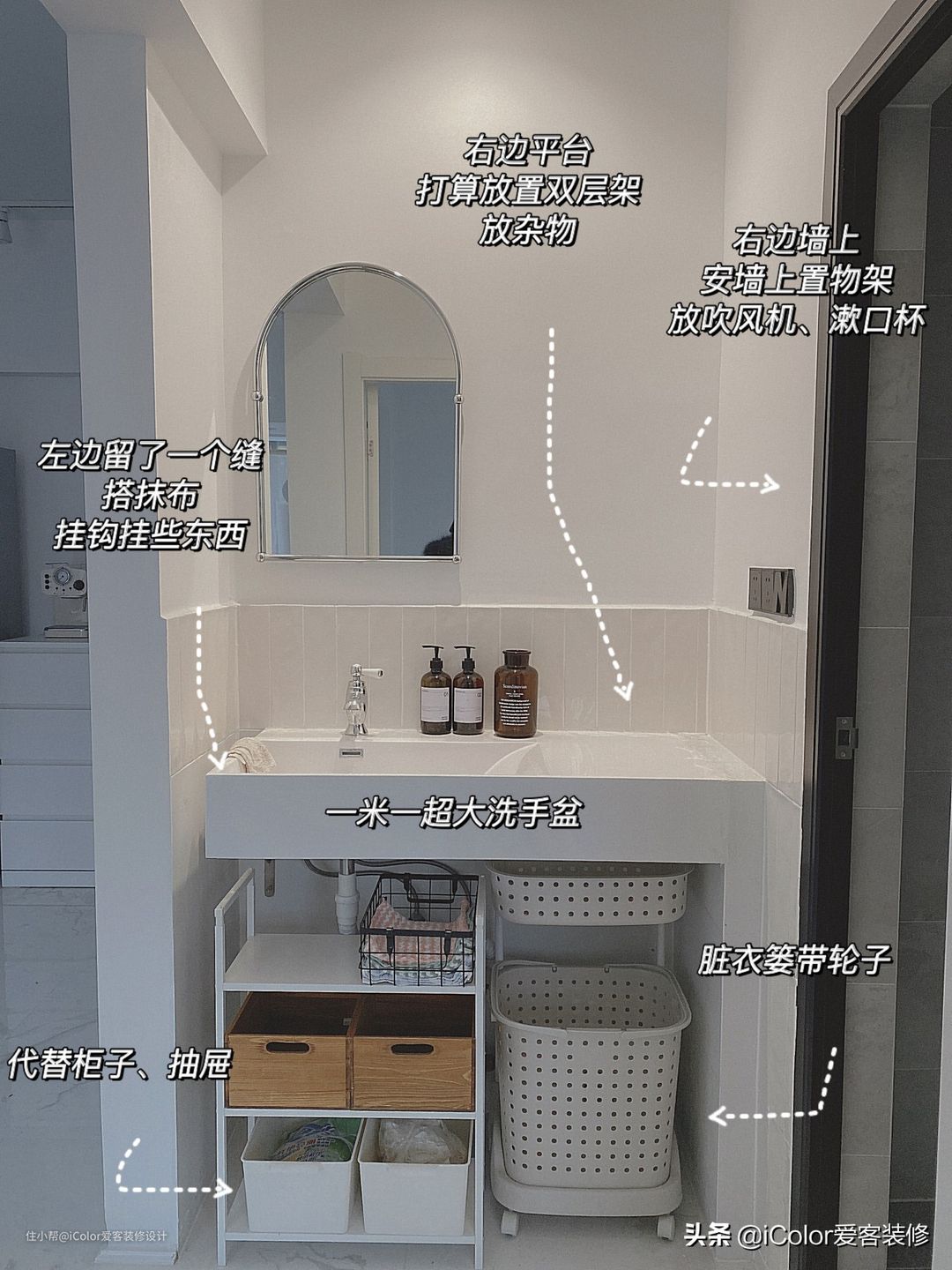 半墙的白色细砖、圆拱形的镜子、极简风的台盆,韩系ins风极简,马上就有内味儿了~