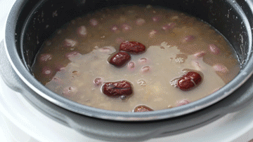 放气之后开盖放入糖,之后也不需要封盖,直接选择开始,将绿豆粥加热至重新沸腾。