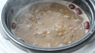 等刚才加入的糖溶解,绿豆粥就做好了。