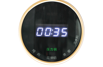 而显示屏下层显示的是高压锅的功能:煲汤、炖肉、豆/蹄筋、煮粥、无水焗。
