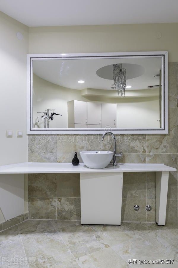 普通五平左右的浴室,则可以安装80厘米至90厘米尺寸的洗手台,另外加上镜柜浴室柜,更显空间的雍容华贵。