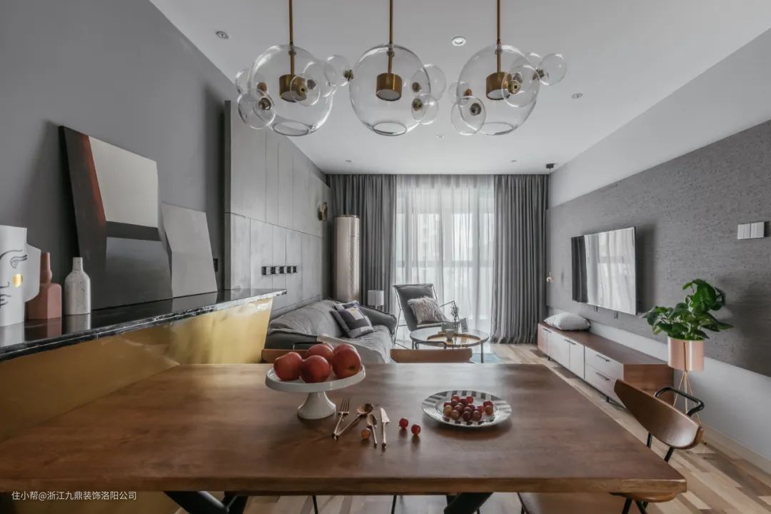 今天小九要分享的是一套89㎡现代轻奢风格装修案例,全屋面积不算大,但是非常实用,设计师用大胆的配色和软装搭配,营造出了一个复古轻奢的空间。在灰色为空间主色时,加以金属元素作为搭配,精致时尚!
