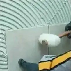 铺粘新瓷砖时,用橡胶锤轻敲新瓷砖,边铺贴边进行调整,需要注意预留膨胀缝。