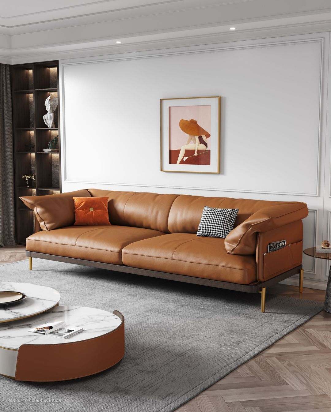 棕色皮质沙发是百搭沙发的代表之作,能与简约、现代、复古、LOFT等各种风格搭配,而不同的深浅度还有不同的味道。皮沙发则由于材质原因,本身看上去就有一定的高级感,能瞬间提升空间档次。