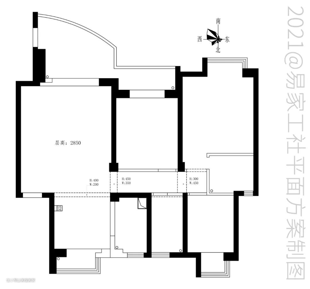 原始户型结构南北通透,三房两厅两卫,有独立阳台和生活区,功能空间很齐全对于当前家庭结构有点充裕,将空间尽最大可能去优化,布置相应的收纳,从而追求最开放的功能需求和舒适度。