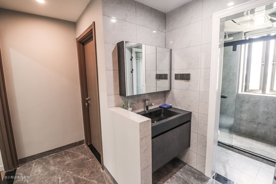 完美的干湿分离,卫生间的洗漱区外移,与马桶区、淋浴区独立分开,大大提高了利用率。需要注意的是,干区一样做好墙体的防水保护,可以有效的防止长期的环境湿度对浴室柜的伤害,也不容易藏污纳垢。