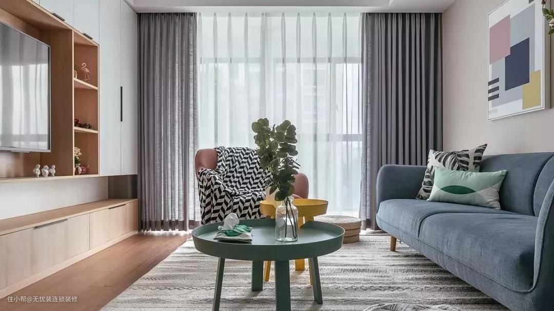 90㎡现代北欧二居,电视墙收纳柜、餐厅卡座收纳好赞!