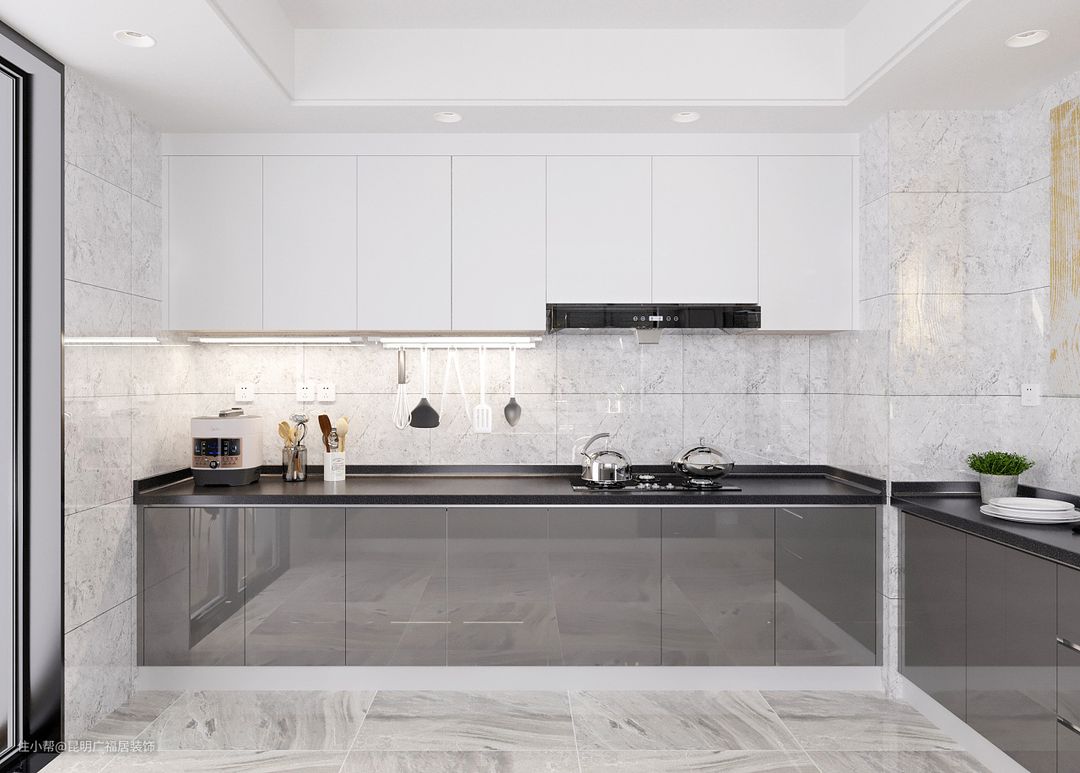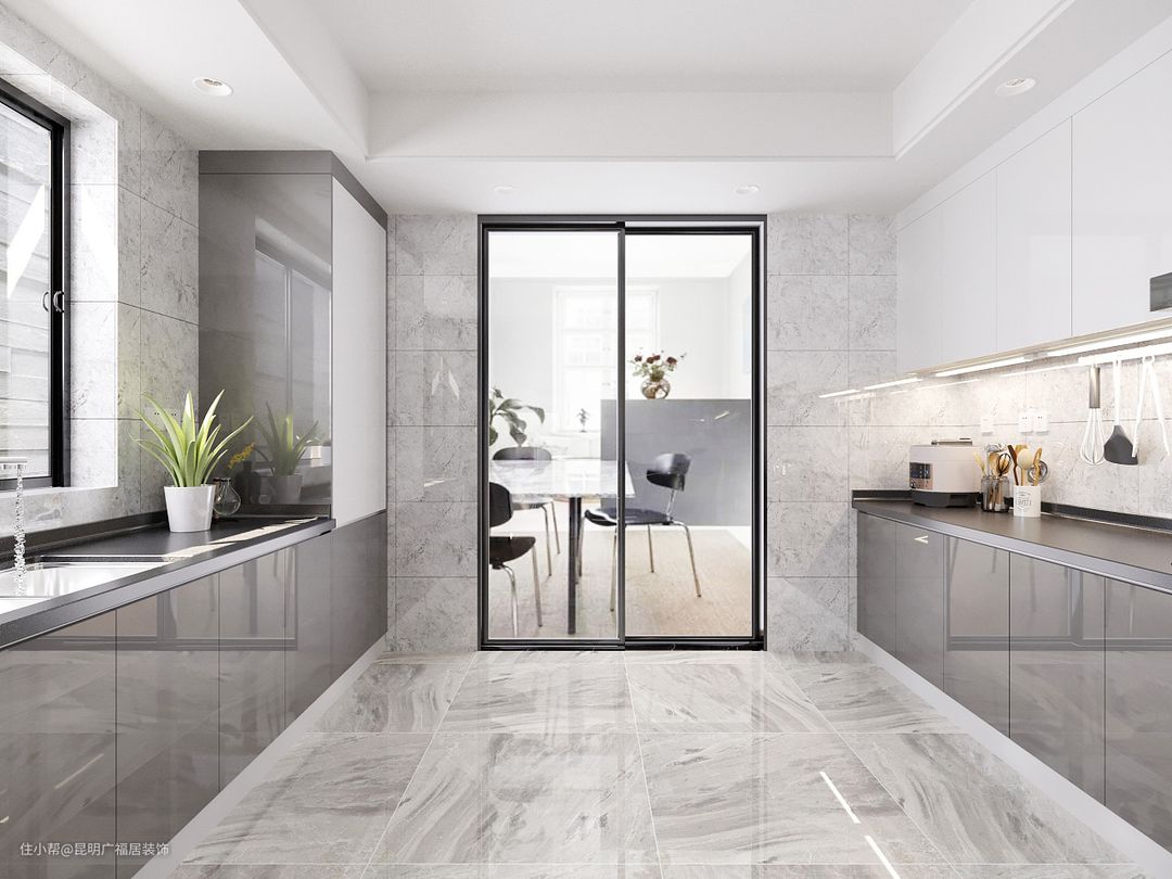 14、厨房安吊轨门要比安普通推拉门方便,底部没有轨道,打扫更轻松。