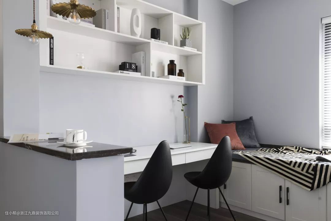 书房做了吧台设计来代替实体墙,让空间光线更好
