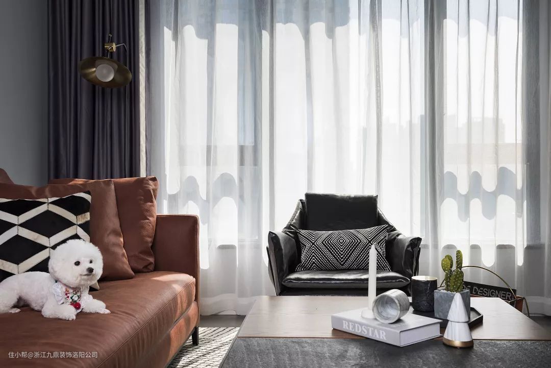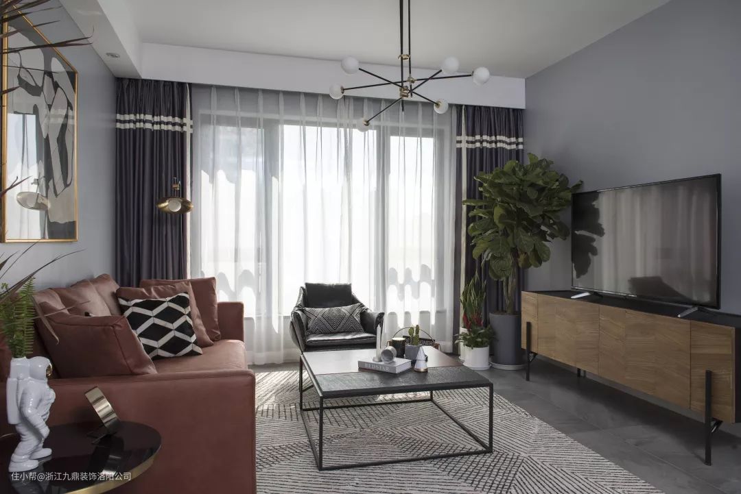 客厅以灰色为基调,加上焦糖色的沙发与茶几地毯的搭配,格调感满满