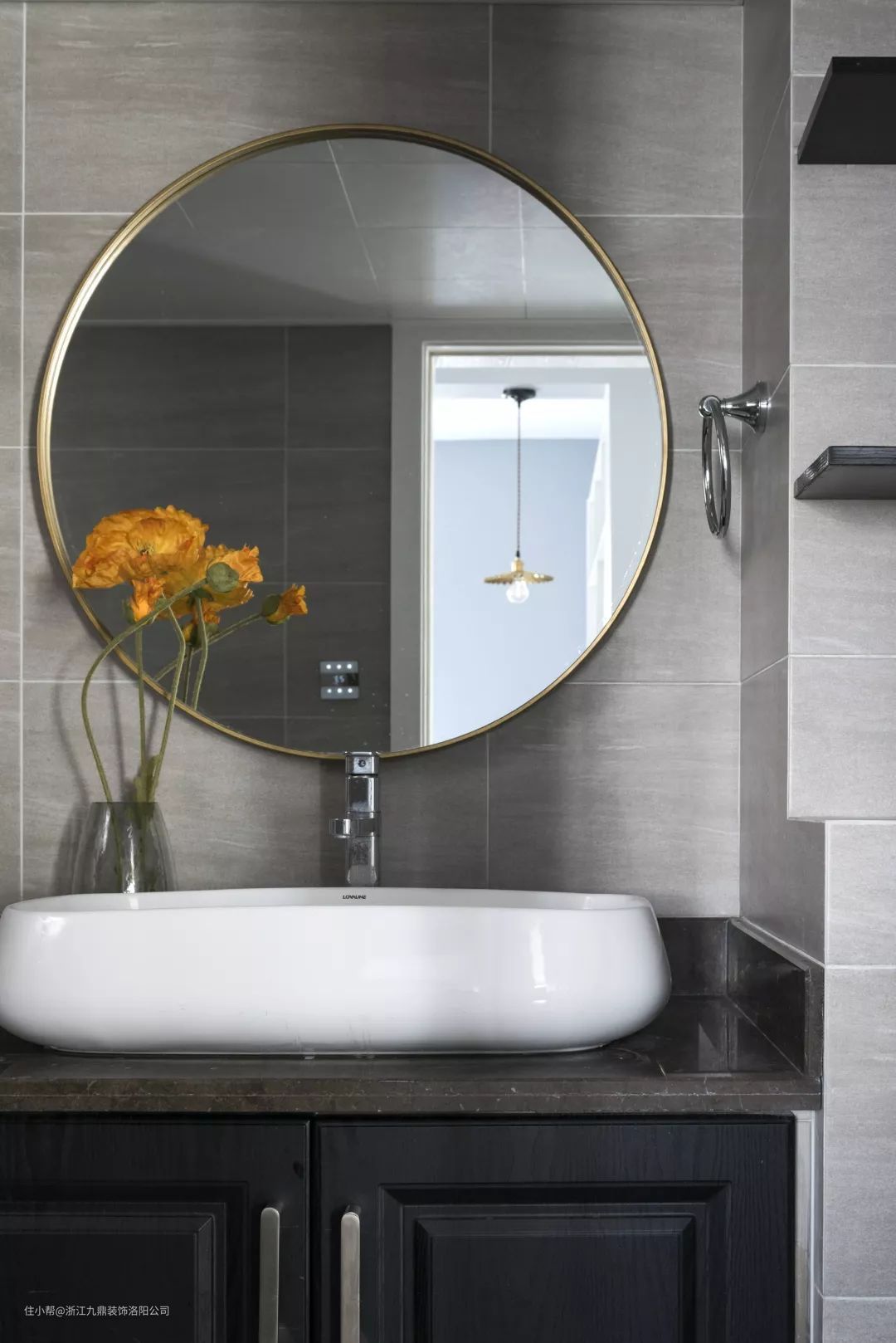 卫生间以灰色瓷砖通铺墙地面简洁优雅,淋浴间采用了透明玻璃的隔断给人纯净自然的舒适感。