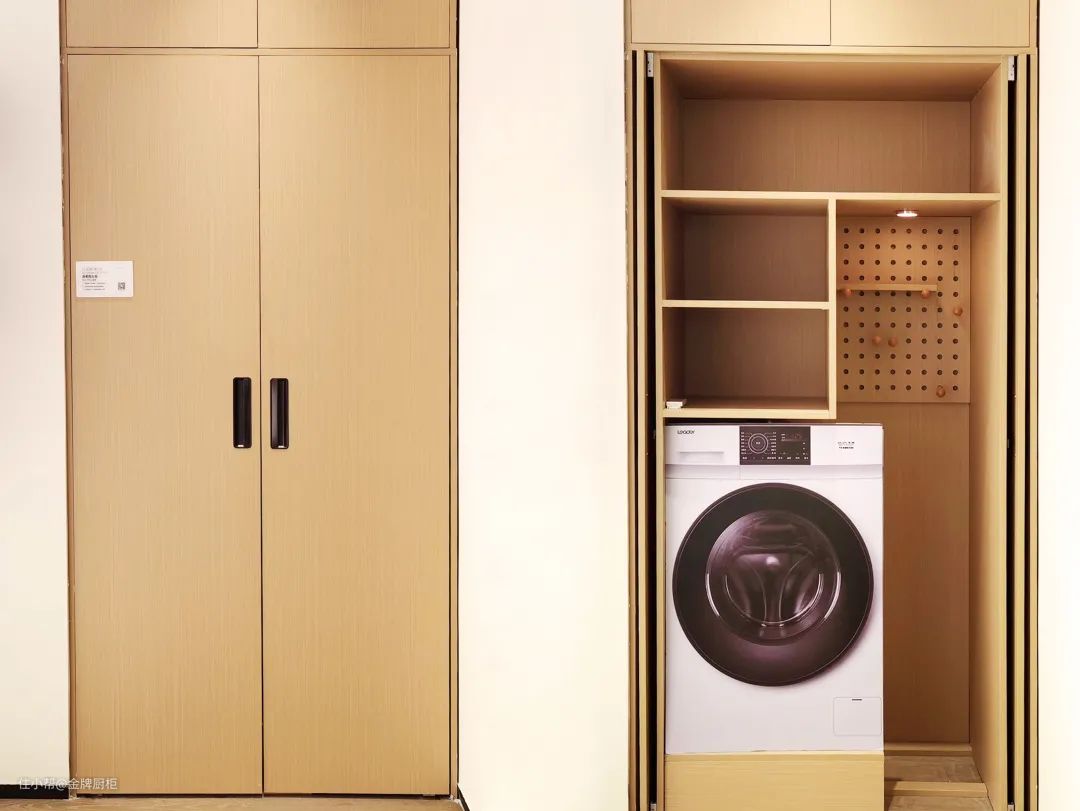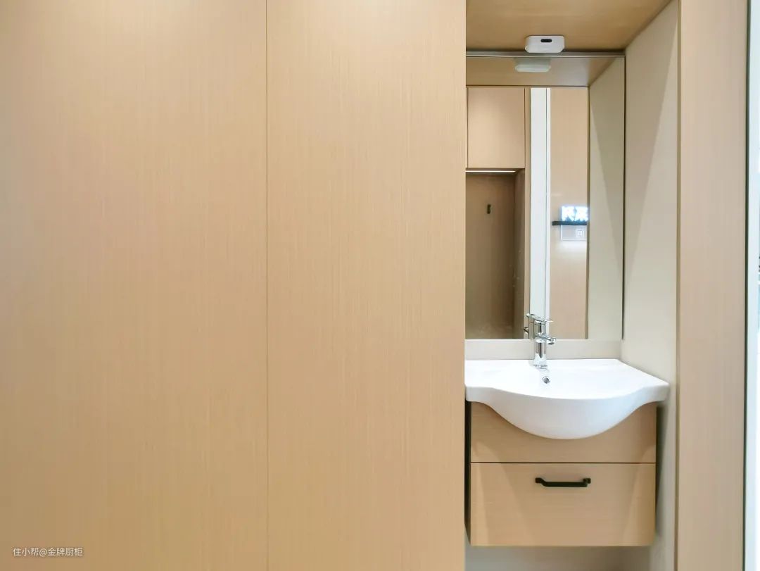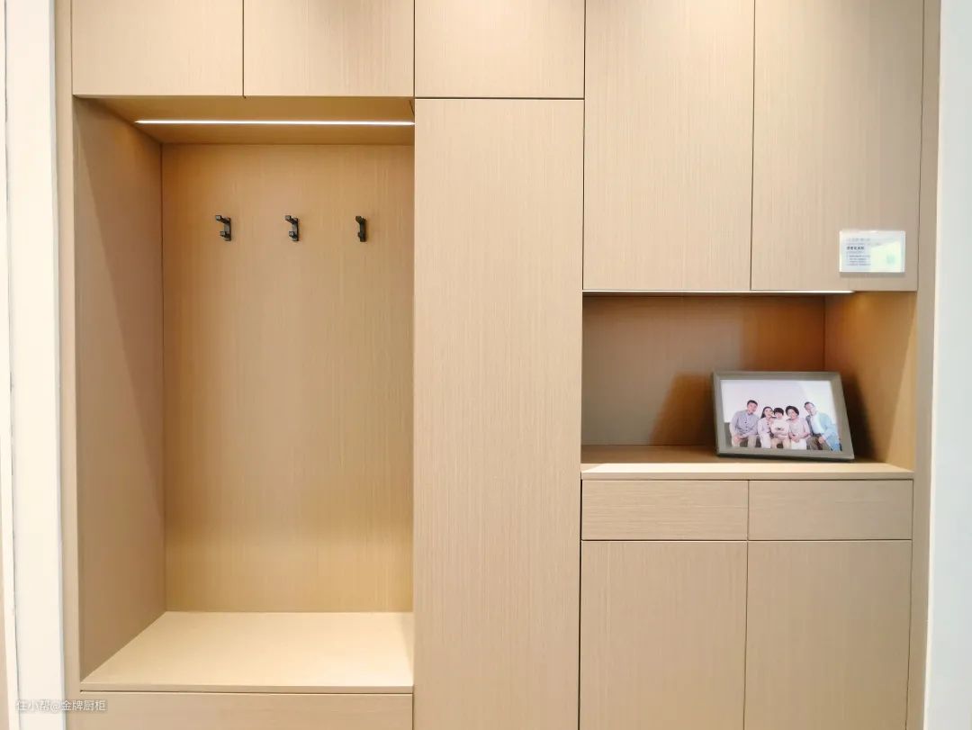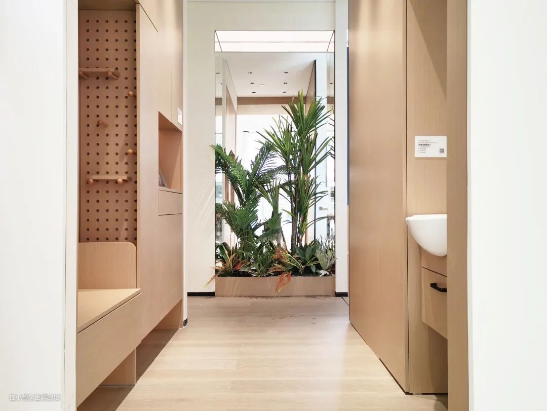 步入玄关,温暖的木色和洁净的白映入眼帘