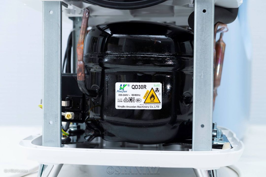 压缩机是宁波华骏/QD30R,国产压缩机进步还是比较大的,目前大部分家电用的都是国产压缩机了,性能没问题,国内也有很多压缩机厂商。