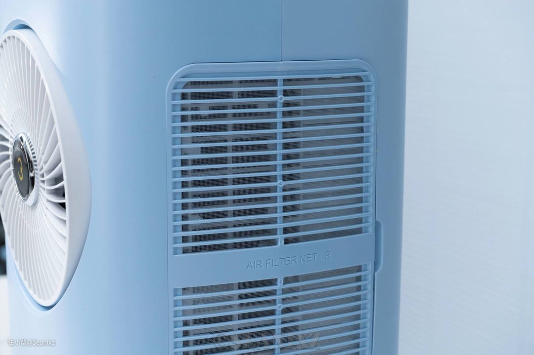 双侧为空气过滤网,运行时可以过滤浮尘,同时也避免内部元器件沾染灰尘,定位高端的风扇类的产品大多数会有这样的设计,减少后期维护方面的麻烦。像常规风扇就会经常需要清洗,因为是个开放式的结构设计。