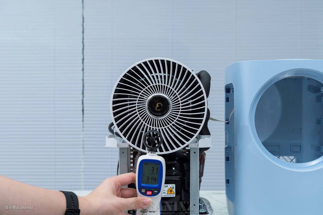 所以其实这款台式空调的定位是冷风直吹,而压缩机运行产生的热量需要开窗通过空气流动带走,避免室内热量堆积,用法就和我们使用普通风扇一样,叫做凉风风扇应该更贴切一些。