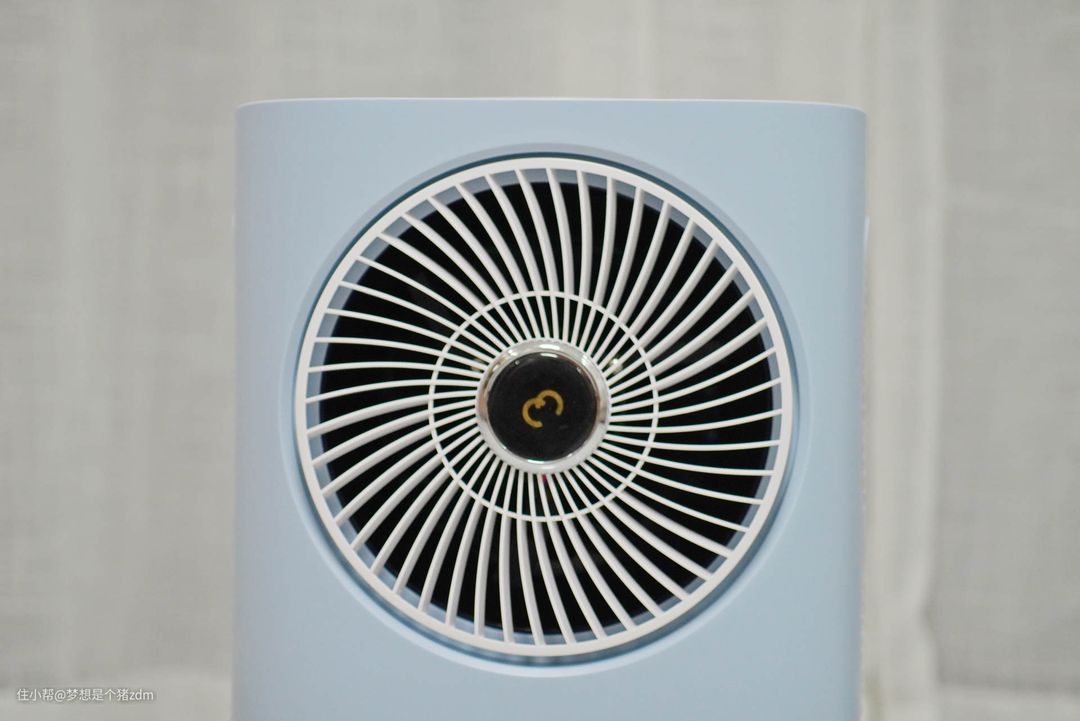 先看看正面的这个出风口设计,出风口格栅和常见的风扇格栅几乎一模一样,通过这个出风格栅的旋转,可以将吹出来的冷风扩散后送向周围更大的范围。