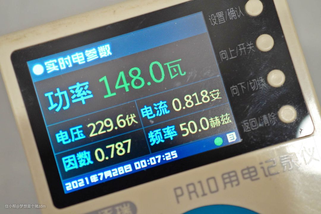 再看看其他的一些参数,这是实时功率,这台移动空调在稳定制冷状态下,实时消耗功率为148W,相对来说功率并不算高。