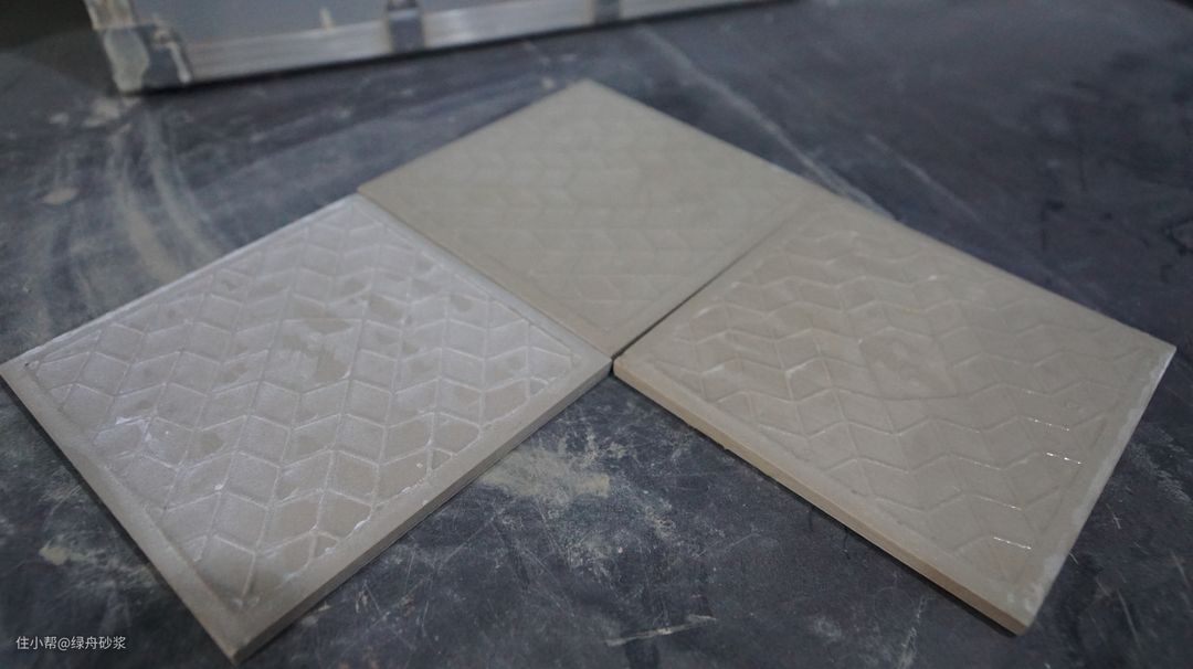 右边两块为涂刷瓷砖背胶的瓷砖