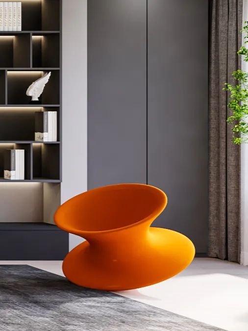红色镂空铁艺座椅作为一抹空间中的亮色十分吸睛,明与暗、红与黑、轻盈与厚重相碰撞,意外的创造出冲突的前卫感。