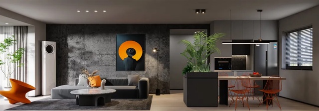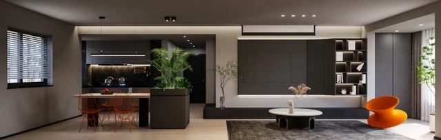 黑色拥有谦虚与傲慢两种特质,慵懒随性却神秘莫测。运用软装点缀,绝美碰撞展现出空间的层次感和高级感。本案业主对于居家空间希望突破固有审美,以追求自我的状态拥抱生活。整体以高级黑色调为主,在软装上用亮色与绿植点缀,冷暖交错,兼蓄并收,为空间增添神秘和艺术的气息,让空间尽显纯粹、自然。