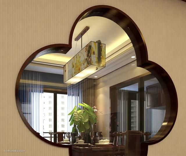 如果摆放的是长桌的话,地面的造型也可以采用这种中规中矩的的形式,两条波打线中间的瓷砖用什么色系的,最好餐桌或者餐椅的某一方面就用这种色系的,这样会使得更有层次感。餐厅北京墙,可做这种古香古色的圆弧造型,中间搭配中国风的图案,简单时尚有立体感。