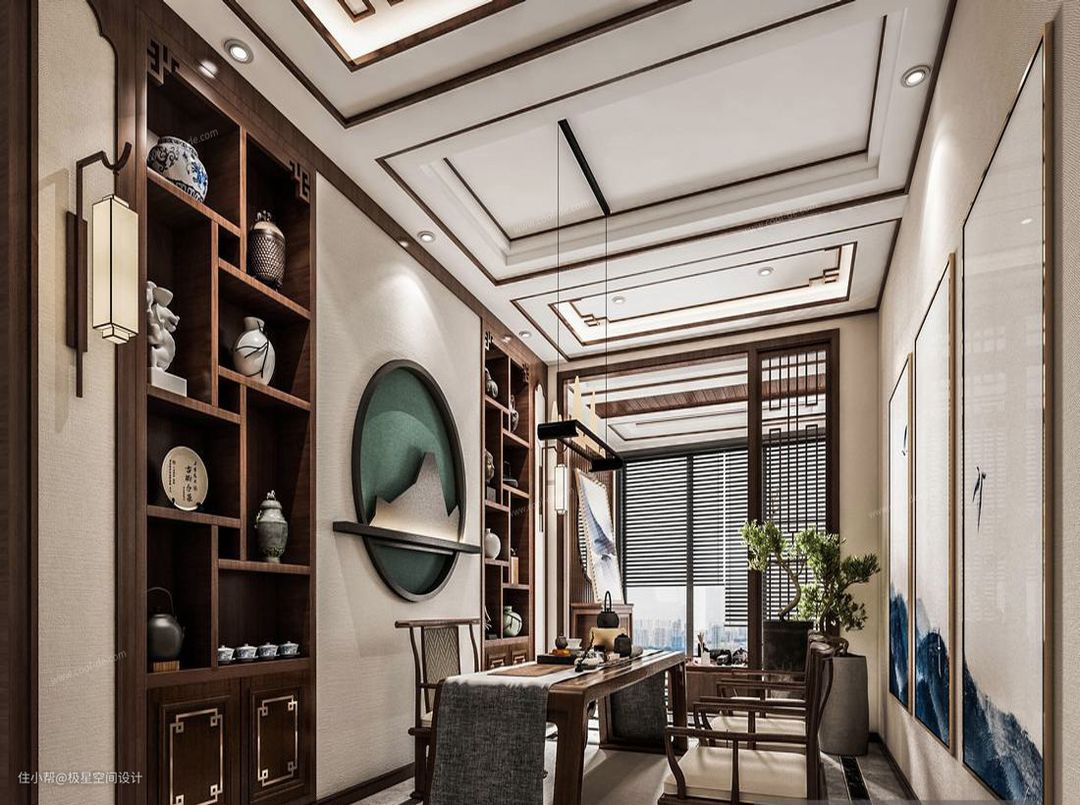 中式书房特有的古韵风情和东方沉淀,往往使人身在其中,品茶、练字,在书情画意中沉淀心灵。