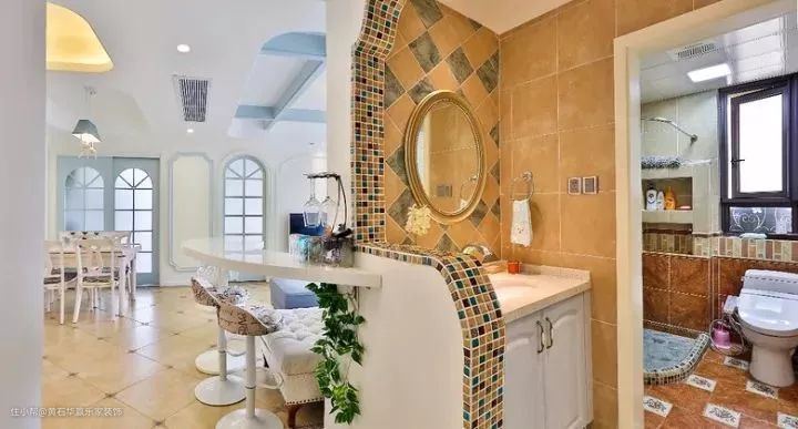 地中海风格最好是用一些比较低矮的家具,家具的线条以柔和为主,可以采用圆形或是椭圆形的木质家具,与整个环境浑然一体。