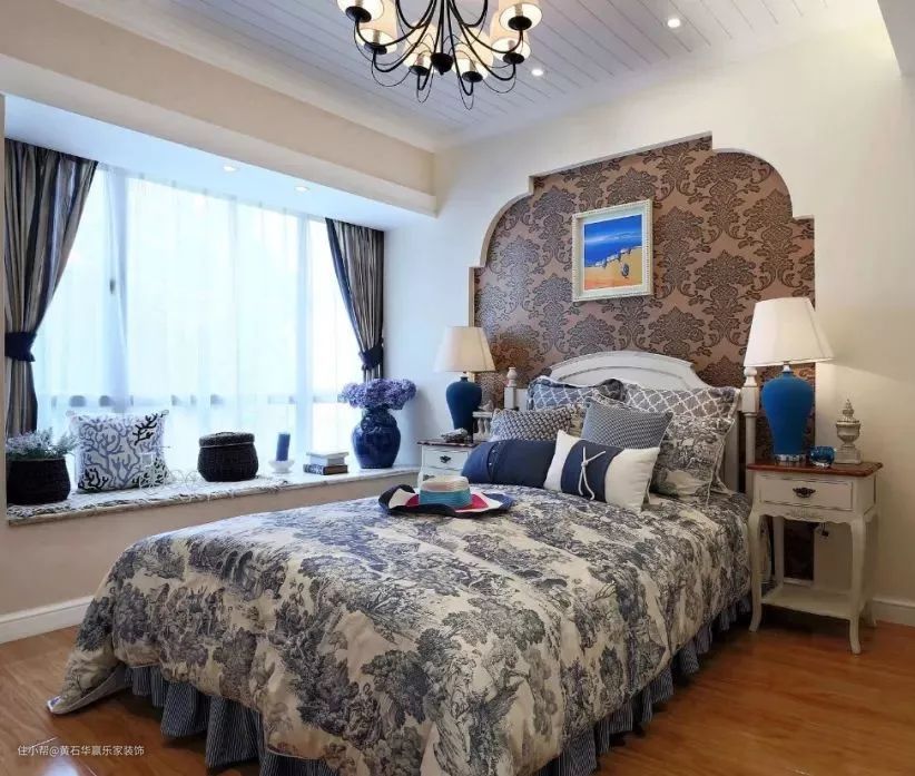 美式乡村风格的色彩以自然色调为主,绿色、土褐色最为常见;壁纸多为纯纸浆质地;家具颜色多仿旧漆,式样厚重;设计中多有地中海样式的拱。