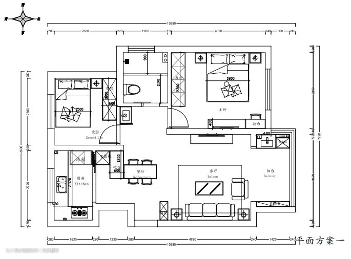【结构】客厅、餐厅和阳台在统一动线上,公共区域较为明显和集中。次卧和主卧分别在卫生间两侧,这样布局很方便。