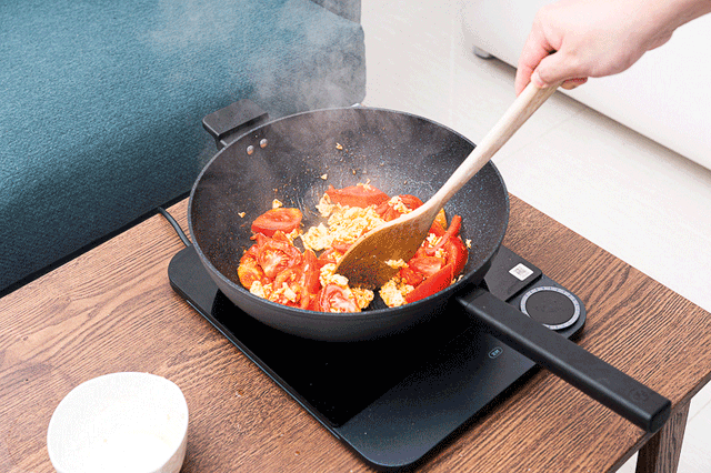 ▼炒鸡蛋由于火力够大以及不沾锅的涂层性能优秀,完全不粘哦。