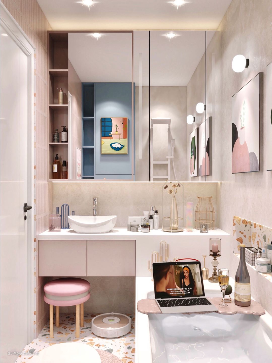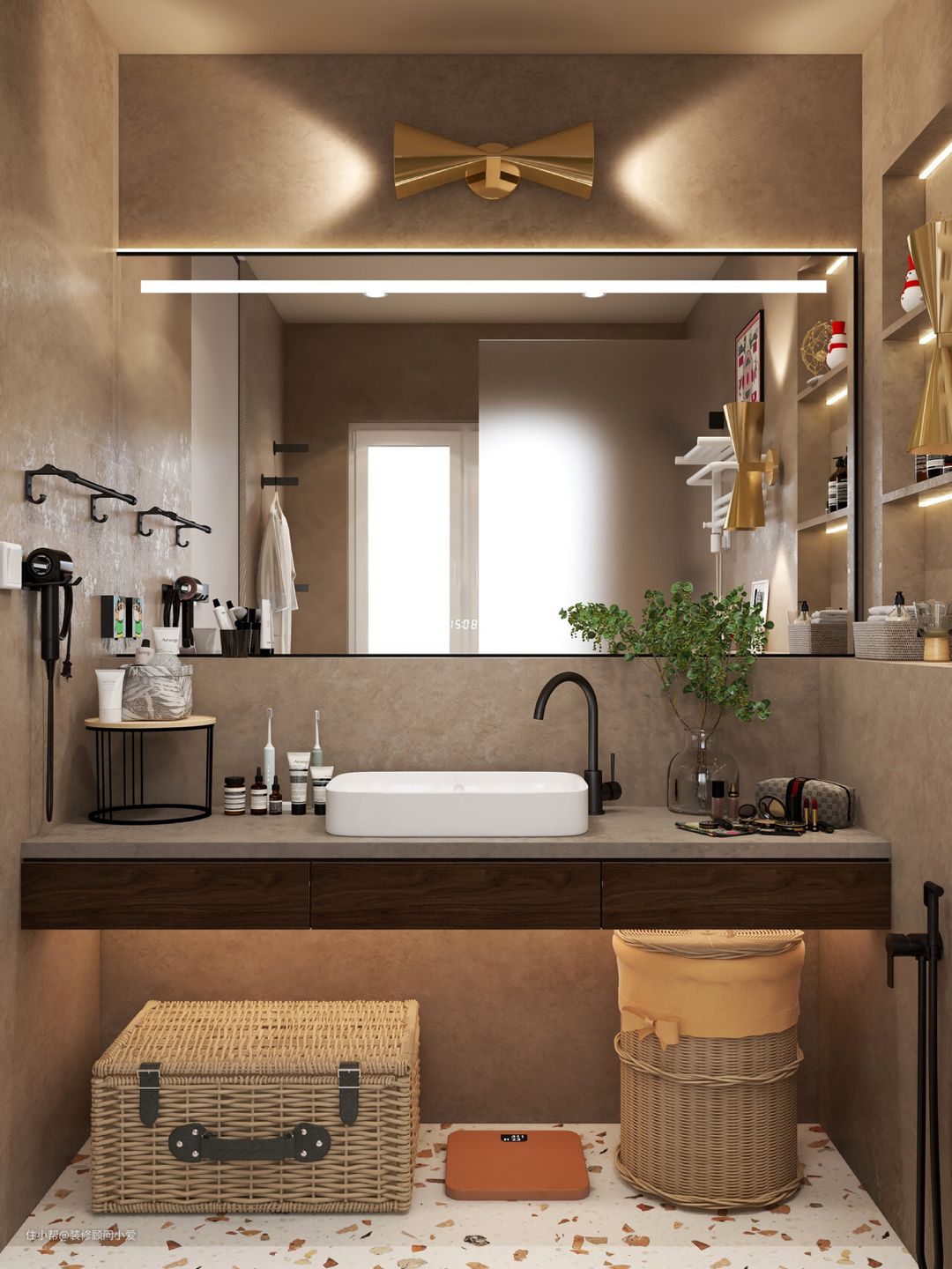 比壁挂式浴室柜更简约的设计,只有抽屉或者只剩两块木板组合成的浴室柜,追求极简轻奢装修风格的小伙伴会很喜欢,小户型也很适合这种浴室柜。
