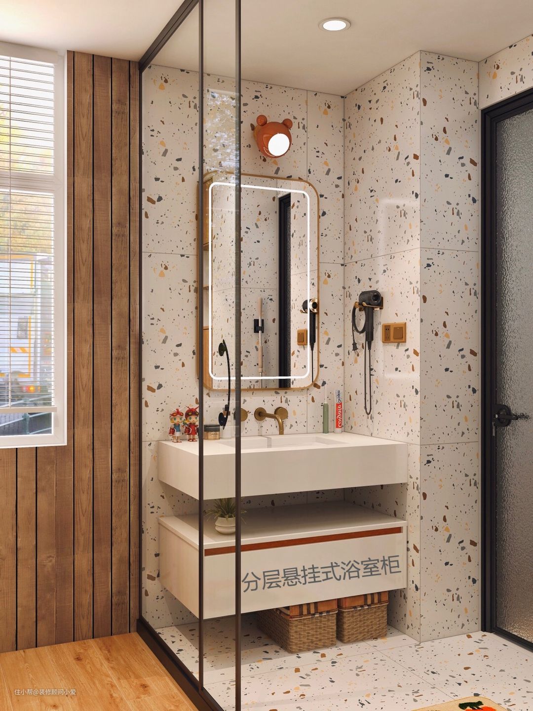 安装悬挂式浴室柜要注意一点:墙体必须是实心墙或承重墙,不然不牢固,有柜体掉落的风险。